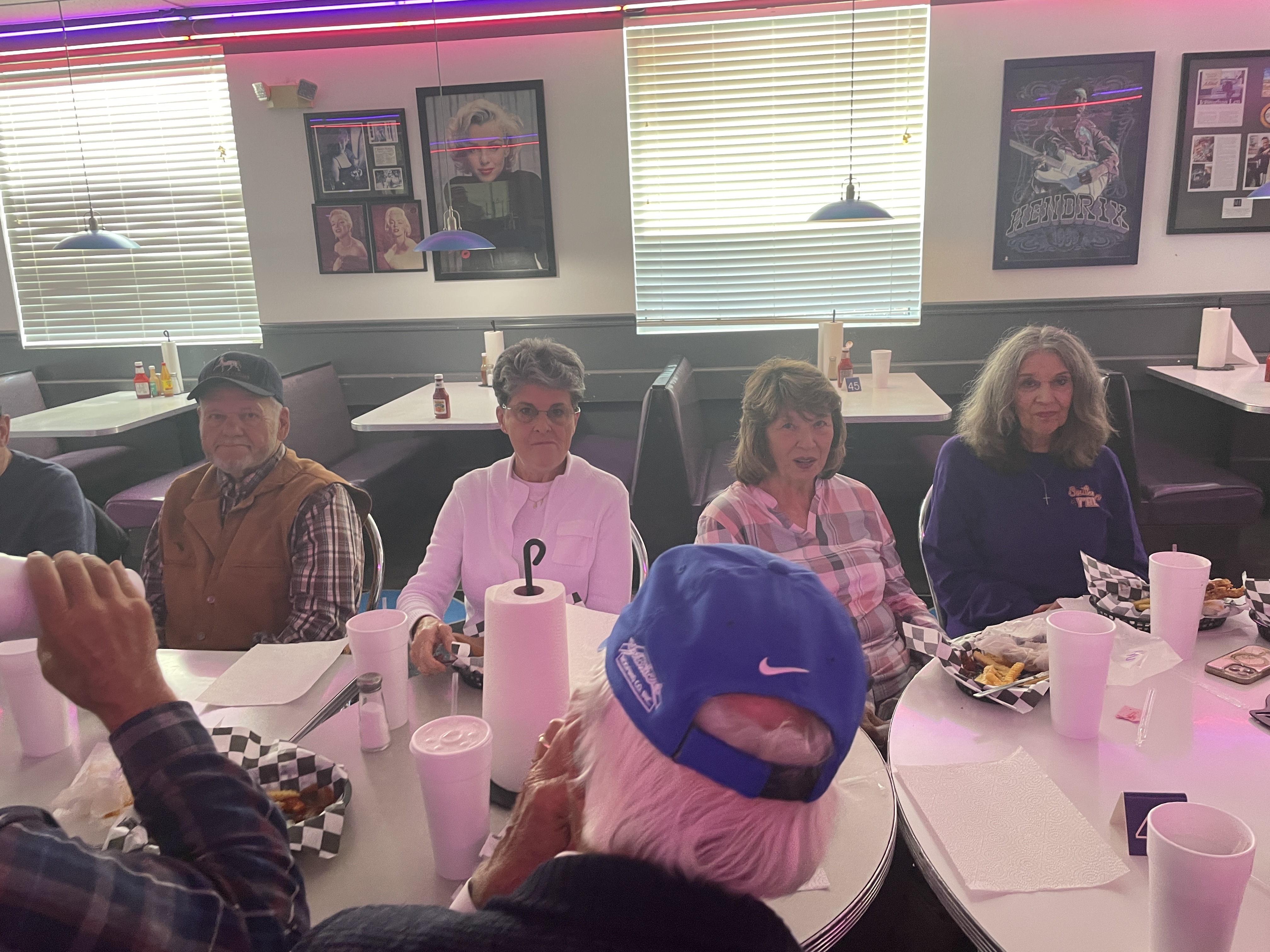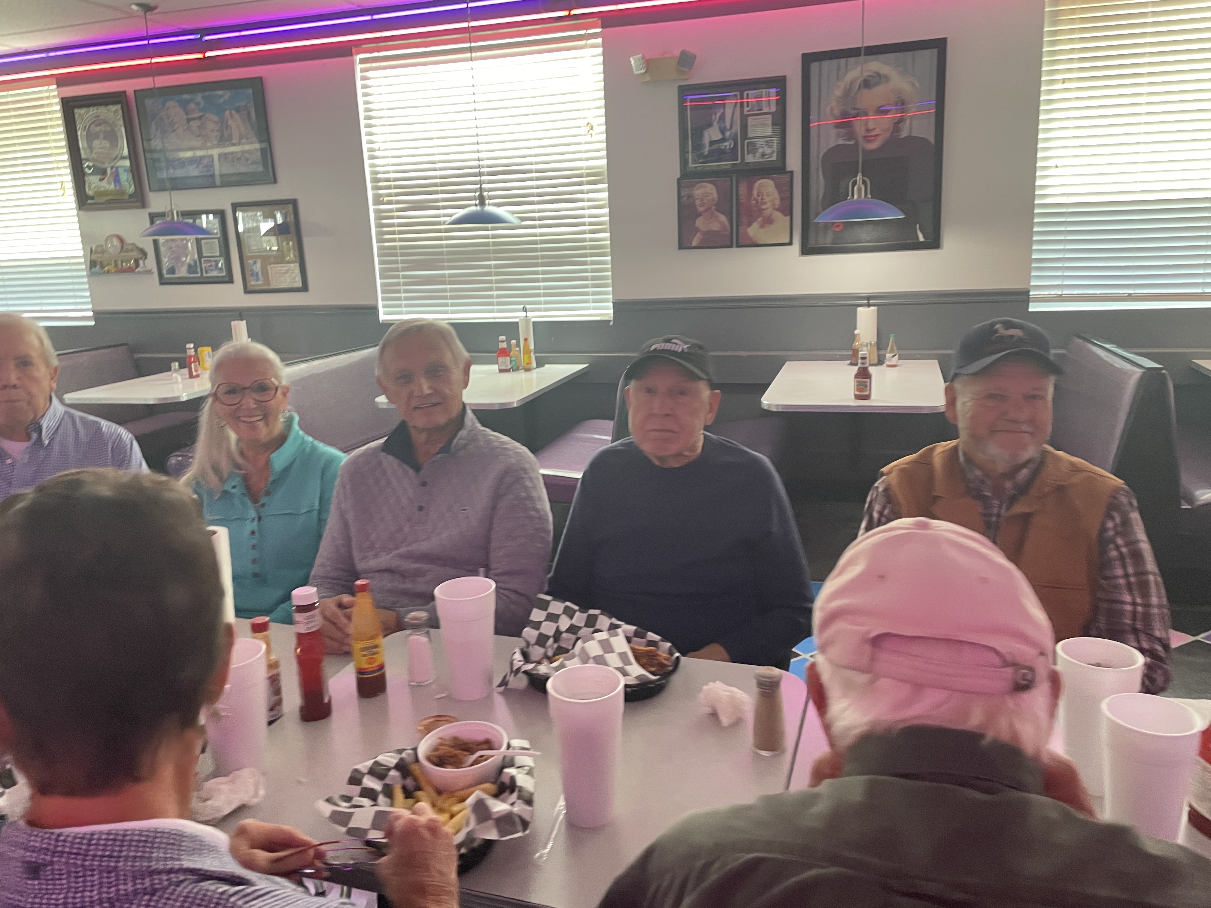 We welcome all from far and wide. On most months, we meet the 1st Monday at 1pm, but if you are going to be in town at a specific date, let us know, we are certainly flexible and would love to see all of our ol' friends. We have toured many of the local restaurants from Italian to Chinese and are always open to suggestions. Each month we plan where we want to go next month and try to get the word out. Come and join us.