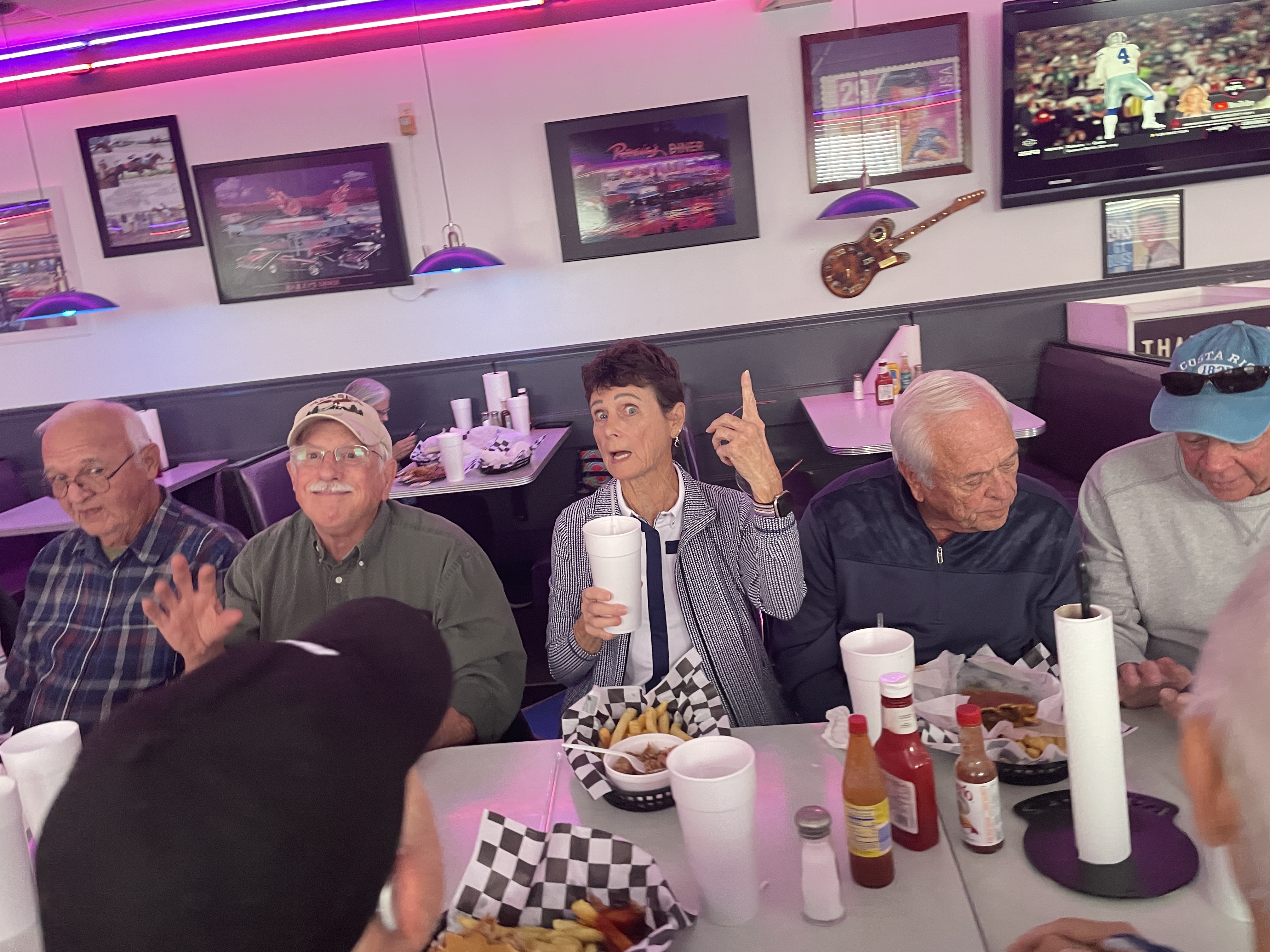 June 2024 started the summer off with La Delicia in bustling downtown Lone Oak. La Delicia had replaced The Parlor after Covid. Since it had been quite some time since we made pictures, we documented this lunch well. We were blessed with some we hadn't seen for a while including Jean Marie and 'significant other' Ken. Around the table clockwise from the back wall; Ken, Jeam Marie. Bobby, Diana, Cecelia, David, Nancy, Brenda, Diane, Reva, Danny and Maxine. We not only had a great lunch, but a great mini-reunion.