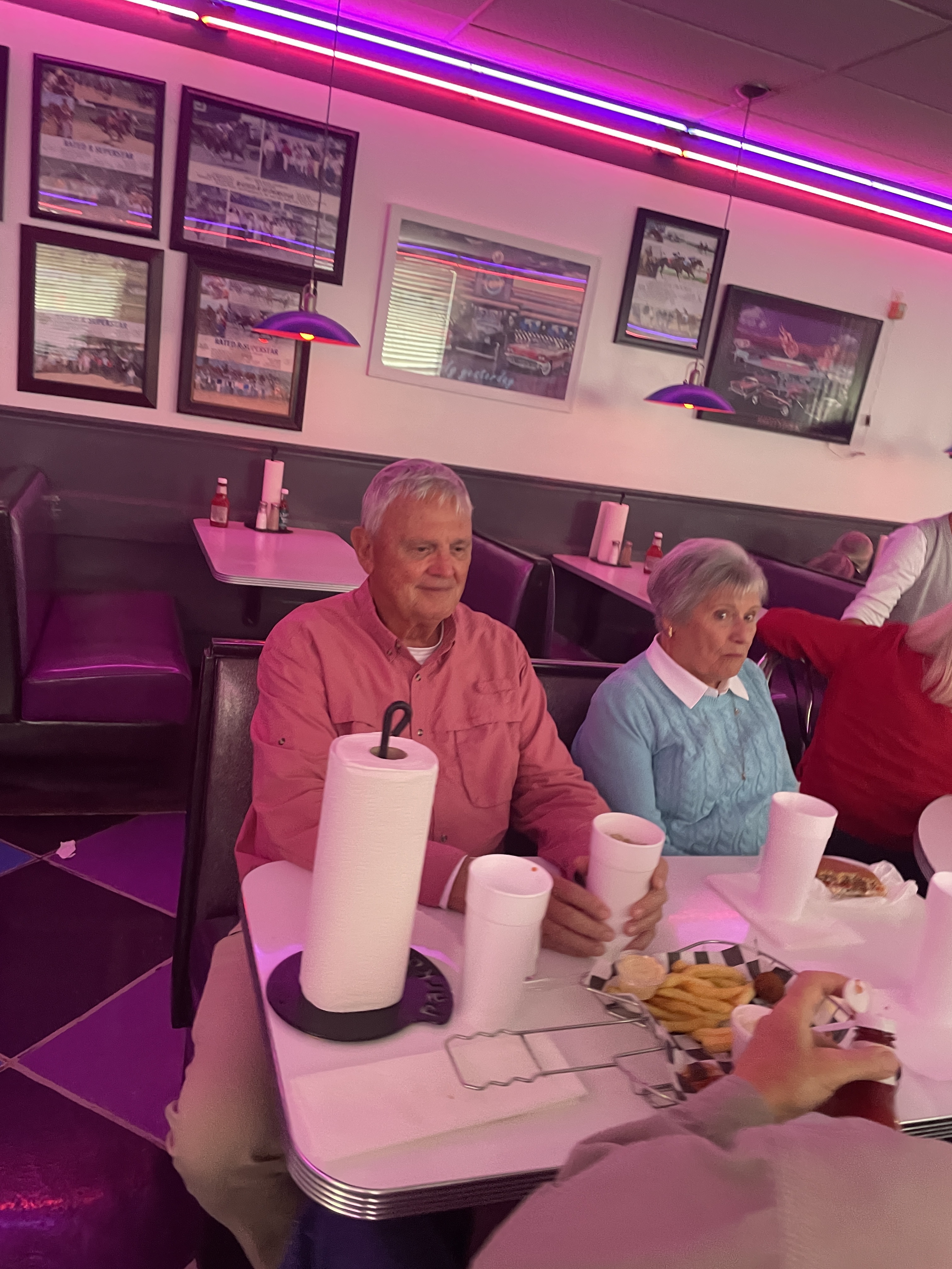 into the restaurant and we are socially distancing... hey, it is a six foot table, and we are all "family."