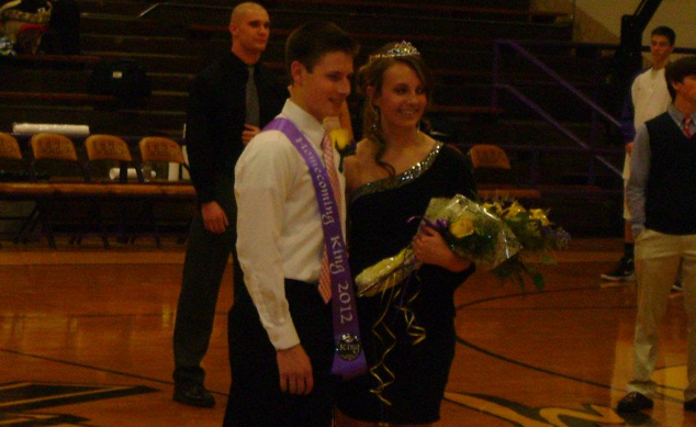 Whitney Aspery and Ricky Grewelle smile for pictures after being crowned 2012 Basketball Homecoming Queen and King. Photo Courtesy of Lesley Garrett