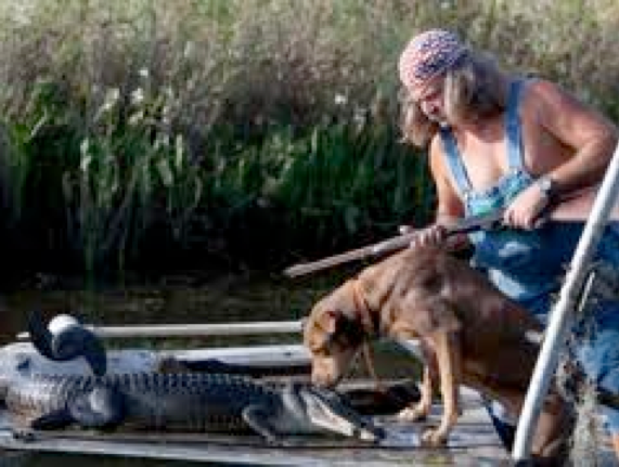 though hunting gators can sometimes prove suspenseful, like when Liz’s partner is nearly pulled overboard trying to make a catch, I seriously doubt that's
