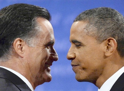 Romney and Obama stare each other down after the third and final presidential debate on October 22nd.